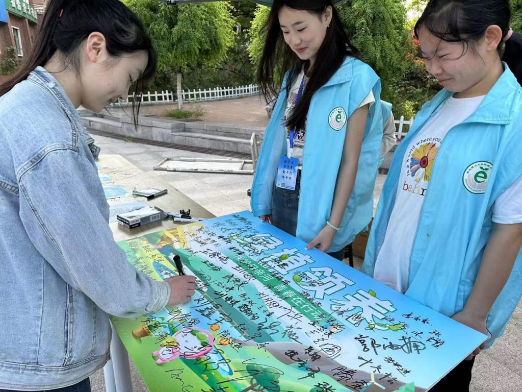 有同学表示:“无论是在云端种树还是在现实中领养绿植,都让我们体验到身体力行保护环境的自豪感。”更有志愿者分发绿植时感慨,“看着绿植被爱护环境的同学们领养,我们内心的喜悦难以言表!”活动尾声,名字签满了海报,绿植温润了心田。