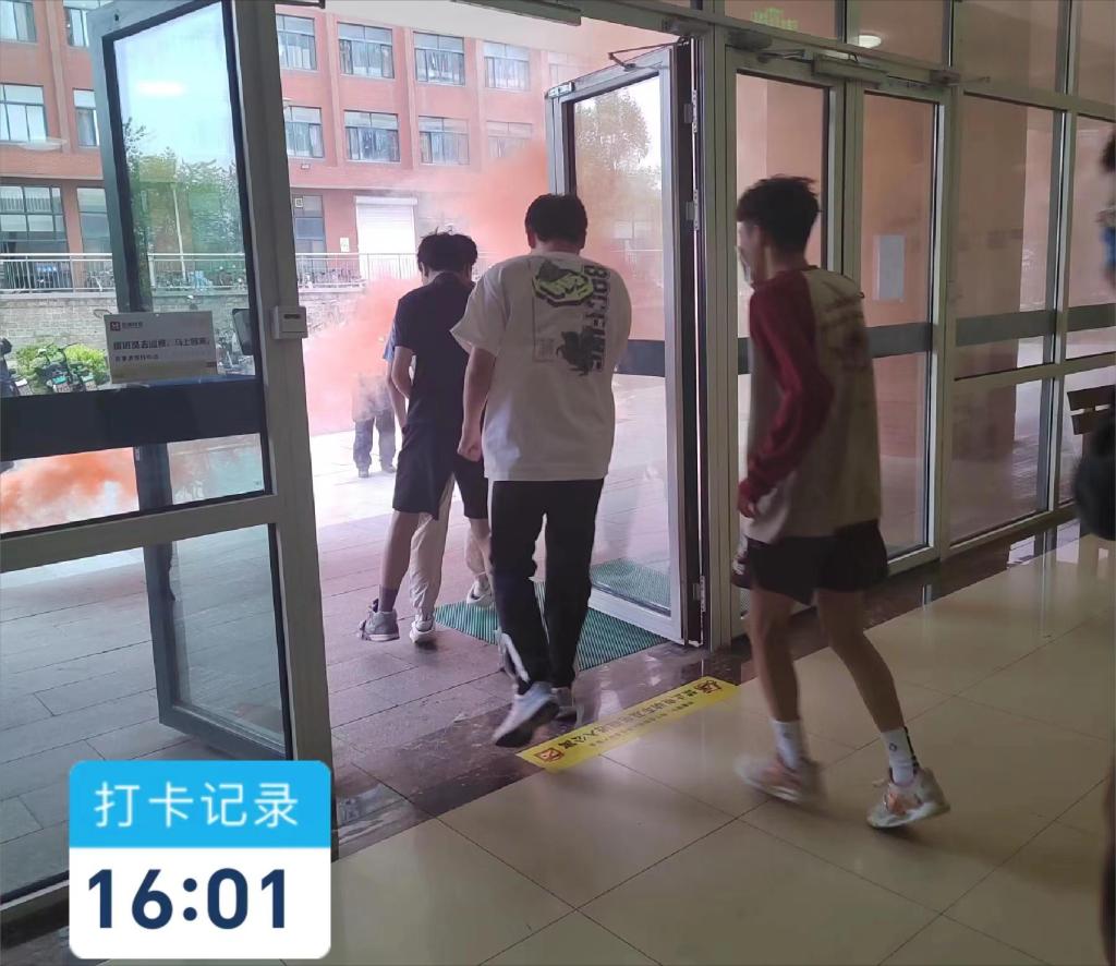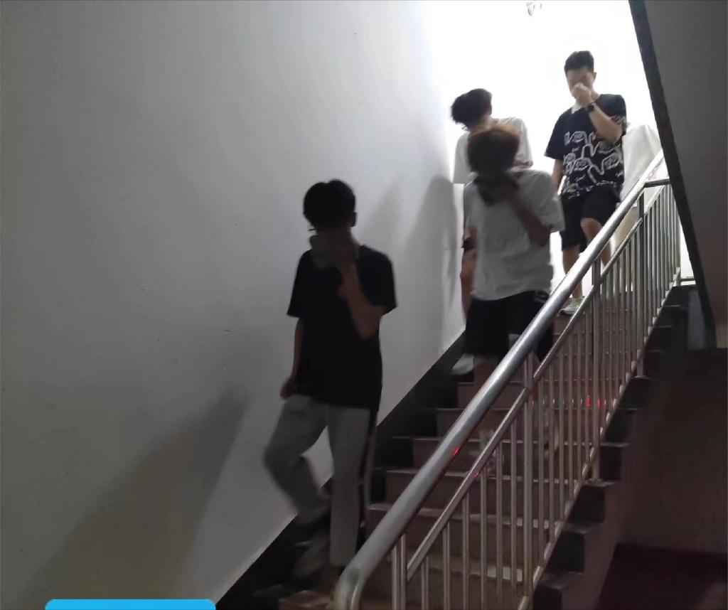 演练开始,随着警报声响起,各班学生在老师们的统一指挥下,捂住口鼻、弯腰低头、快速行进,有序地按照规定疏散路线迅速撤离“危险区域”,到达宿舍楼底空旷处集合。全体师生到达指定安全位置后,相关负责老师立即清点人数,检查是否有师生受伤,并及时向指挥长汇报疏散撤离情况。