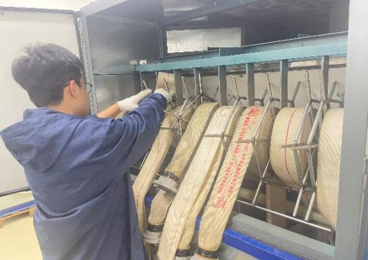 设备的设计、研发、组装、调试过程颇为艰难。团队采用讨论、试验、模拟等方法,精益求精,严谨反复实验,第一代开闭一体式消防水带干燥设备于2020年问世。实验表明该设备单位能耗除湿量较低。为充分提高能量利用率,2021年设计研发了第二代新型干燥室,预热时间短,但是热量没有得到充分的利用。2022年汇能科技团队研发出最新一代设备,单台设备干燥数量从两盘提升到八盘,同时大幅度提高了能量利用率。2023年,该团队计划将微波技术嫁接到干燥设备中,目前正处于试验阶段。