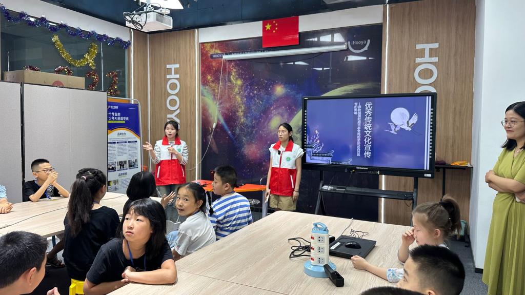 7月24日上午,团队前往乌鲁木齐虎牙编程创客科技培训机构进行志愿服务活动。志愿者们给培训机构的小朋友们上了一堂关于春秋战国时期百家争鸣的课程,并开展纸飞机投壶等小游戏,并奖励完成游戏的孩子们小礼物,展现出团队的人文关怀,并提高小朋友对传统文化的兴趣,有效提高了文化的传承度。志愿者用简单易懂的言语和小游戏,通过寓教于乐的方式让小朋友们了解到我国的优秀传统文化,并成功抓住了小朋友们的兴趣。孩子们满怀热情,积极与志愿者们互动交流,在热情融洽的氛围中有效拉近了彼此的距离,在传承文化的同时引导他们将所学知识传递给更多的人,这也是本次志愿服务的初衷。