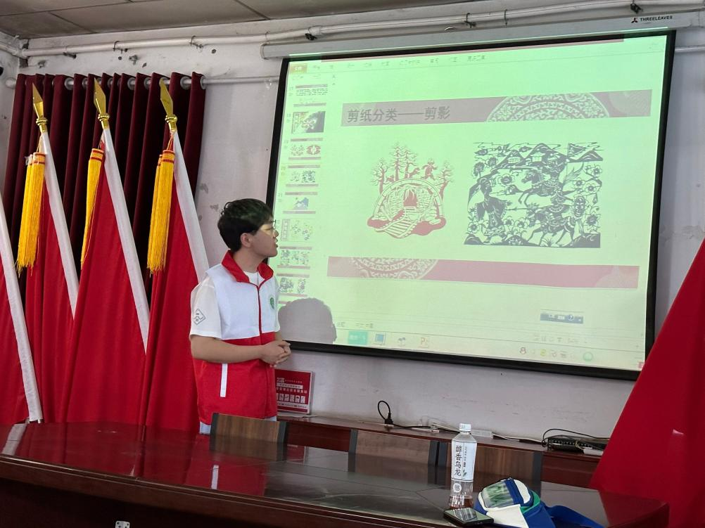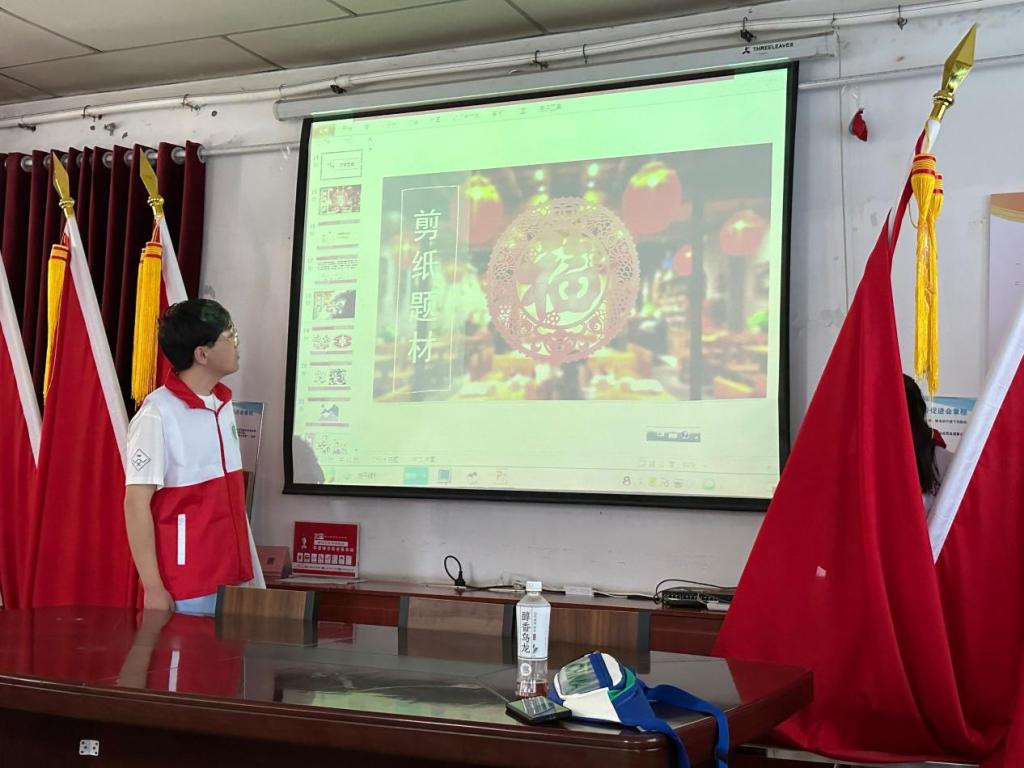 团队成员胡羽婷、袁蕊、孙腾远来到乌鲁木齐市安宁渠东戈壁村村民委员会,为未成年人讲解剪纸相关内容,引导同学们通过学习、探寻身边的非物质文化遗产,了解、热爱中华优秀传统文化。接受传统美德和人文精神的熏陶,培养对中国文化的自信心和自豪感,激发家国情怀。