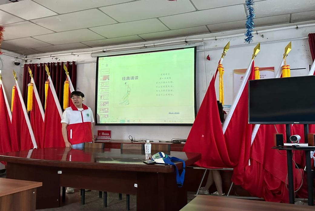 团队成员孙腾远带领学生们诵读经典诗篇《夜雨寄北》。