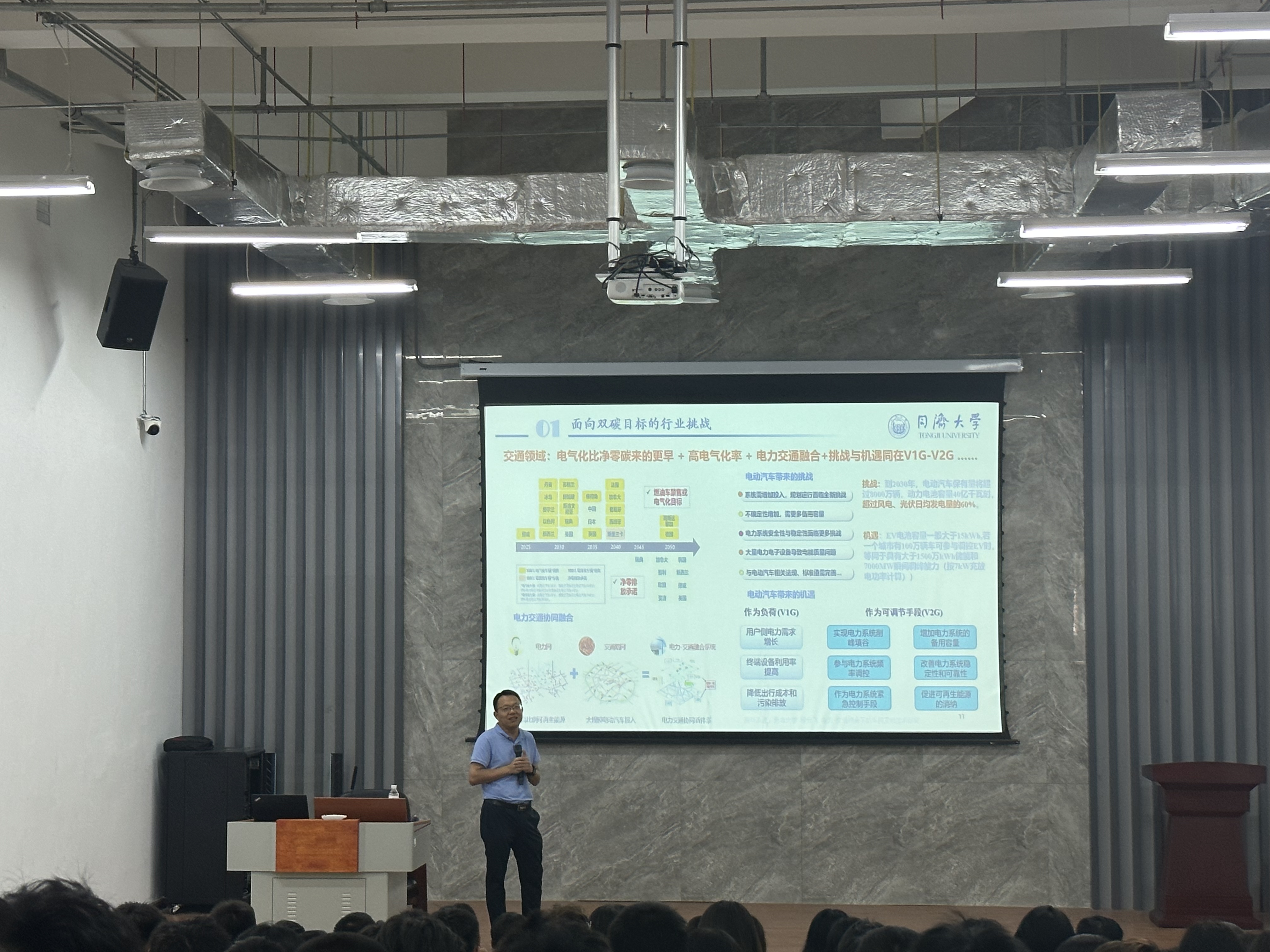 阮应君校友以“双碳目标下城市综合能源规划”为题,围绕我国能源现状、国家战略需求,针对区域综合智慧能源系统的协同规划、智慧运维、高效设备等方面进行了详细介绍。整场报告深入浅出,旁征博引,既理论深厚又别开生面,使老师和同学们对目前区域综合智慧能源系统存在的前沿问题有了深刻的认识,开阔了学术视野。期间,阮应君校友还引用了一些经典案例,论述了面向双碳目标行业存在的壁垒问题,他还寄希望于同学们追求真理、提高自身能力、积极探索未知领域的科研求知精神。最后,在报告互动环节,同学们踊跃举手提问,但由于时间限制,阮应君校友耐心细致的解答了两个最受老师同学们关注的问题,还结合自身在实践中积累的宝贵经验,对未来发展提出了指导性意见,师生们表示受益匪浅。