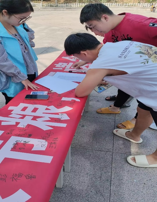 本次活动线上与线下同时进行。线上,参与者在活动当天进行光盘打卡,同时积极号召大家节约粮食,落实光盘行动。线下则开展了光盘行动签名,了解学校餐厅光盘情况,宣传节粮的重要性以及光盘行动的必要性等一系列活动,以此号召大学生多多关注国家粮食安全,节约粮食从自身做起,从小事做起。