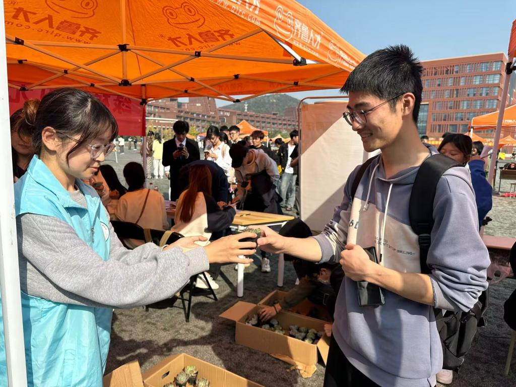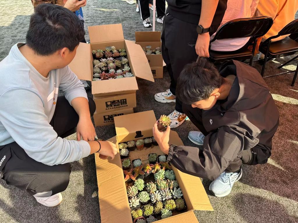 本次活动通过线上线下相结合的方式吸引了共500名学生积极参与,在线下活动现场,参与活动的同学们自觉排成两队进行签到,随后有序挑选并领养自己钟爱的绿植。