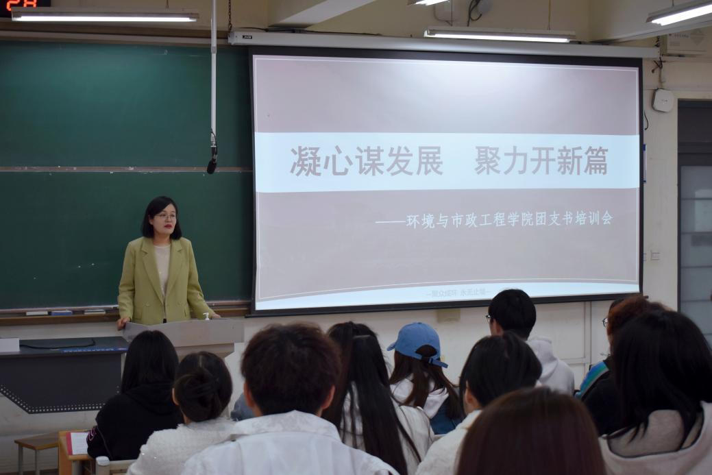 为加强共青团基层组织建设,充分发挥学生干部模范带头作用,提高主题团日活动开展质量与形式,落实团支部“三会两制一课”制度常态化,全面加强基层团支部工作的组织力、引领力、服务力和大局贡献度,提升团支书的政治素养、组织能力和服务能力。4月10日,环境与市政工程学院团委开展“凝心谋发展,聚力开新篇”团支书培训会,学院学工办主任、团委书记花会娟主持会议,学院全体团支部书记参与会议。
