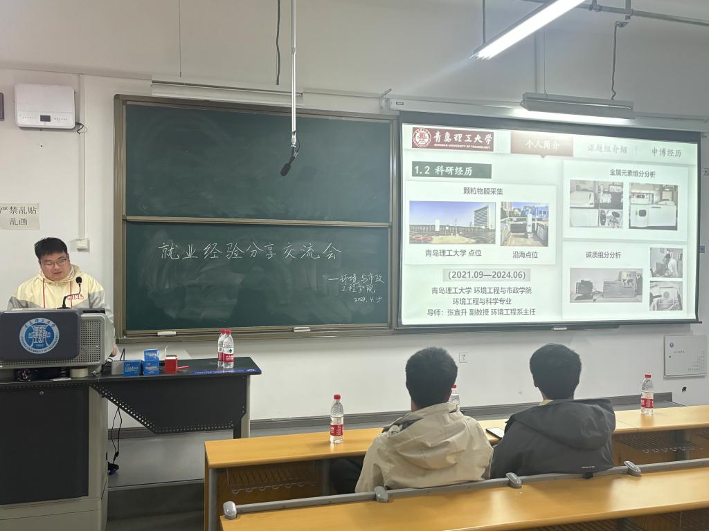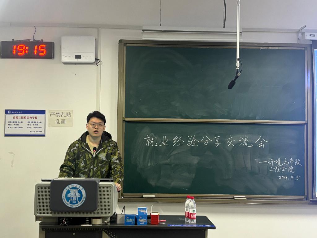为引导环境学子树立正确的就业观、择业观,培养学生的求职技巧,环境与市政工程学院于2024年4月15日晚7点在二教311教室举办“携经验,谋未来,启新程”研究生就业经验分享会。本次分享会邀请到了研究生就业指导辅导员于哲源老师和五位已落实去向的优秀研三毕业生:陶文鑫、张润泽、王志荣、张峰鸣、吴书剑。他们就择业、申博、简历制作、体制内备考心得及应试技巧等方面分享了宝贵经验。学院各专业一百三十余名研究生参加了本次就业经验分享会。