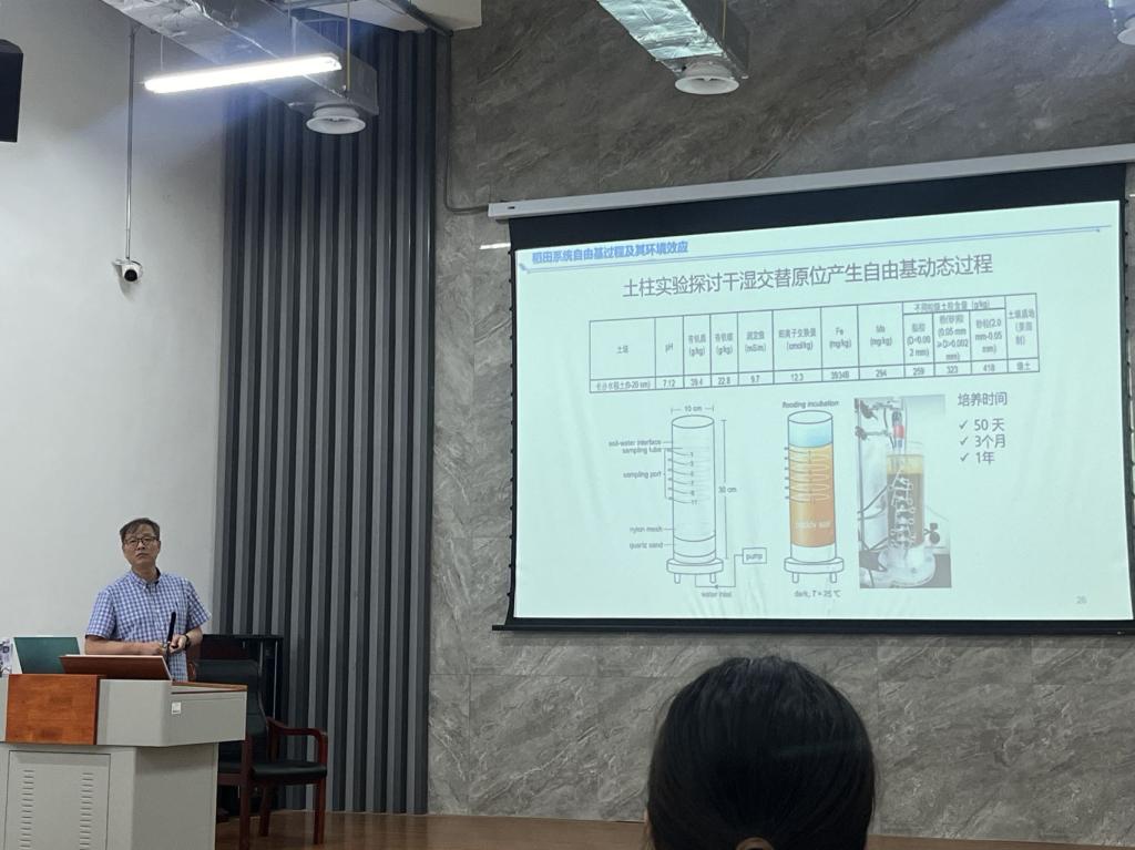 周东美教授围绕稻田土壤自由基这一科学前沿,深入剖析了自由基在稻田土壤水土界面的分布及其显著的反应活性,介绍了自由基在稻田土壤环境中的普遍性和形成机制,详细阐述了稻田上覆水光反应、根泌氧体系以及干湿交替过程的环境影响,揭示了这些生物地球化学过程在稻田土壤氧化还原环境中的作用,特别是对于有机碳转化的影响以及自由基在其中扮演的核心角色,还讨论了稻田水环境中羟基自由基的生成路径及其对生态系统整体过程的贡献,进一步加深了我们对稻田土壤环境自由基作用的认识。