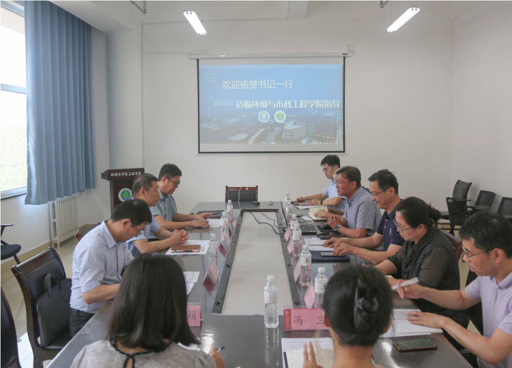 7月11日,学校党委书记杨赟到环境与市政工程学院走访调研并召开座谈会。党委常委、宣传部部长、党政办主任钱均、党政办公室副主任张忠臣一同调研。学院领导班子成员、教师代表参加座谈。