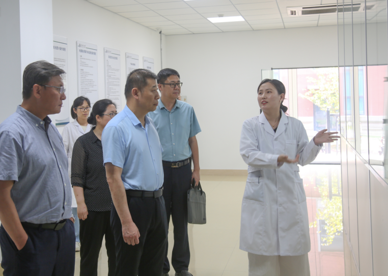 杨赟一行实地查看了气相色谱质谱室、分子光谱室、原子光谱质谱室等实验室,全面了解学院分析测试中心运行和管理情况。