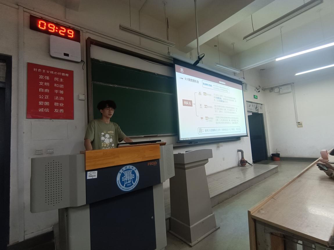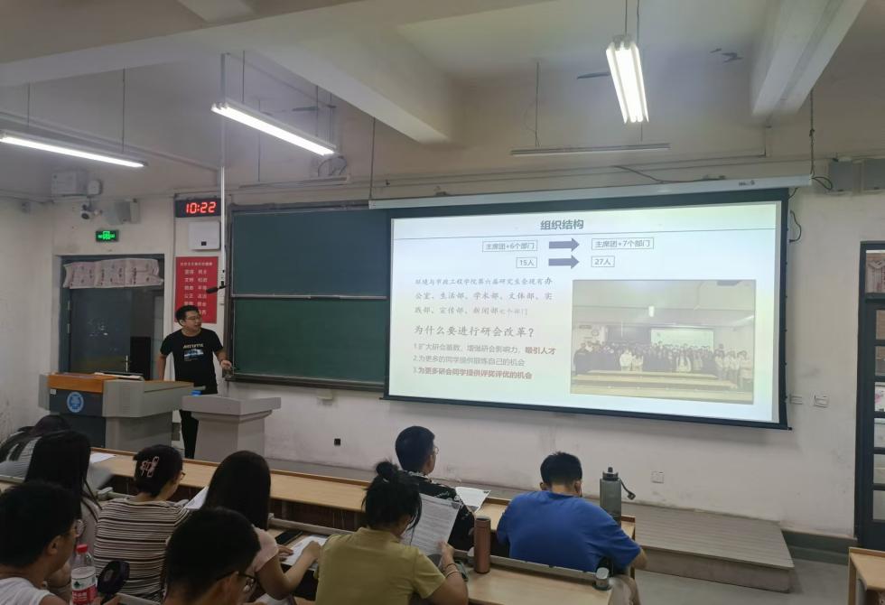 研究生会宣讲在同一天的上午继续在主教B132展开,由研究生会主席孟航帮助新生了解研究生会的职能和活动。