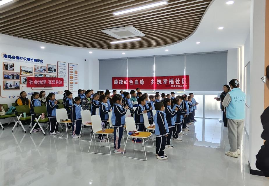 紧接着,志愿者带领孩子们走进红色角色体验区,亲身体验张思德同志和沂蒙六姐妹的英勇事迹,深刻感悟到红色精神的独特魅力。在红色歌曲大家唱环节,南岛社区的孩子们学习并合唱了《歌唱祖国》,以此铭记历史,传承伟大的革命精神。