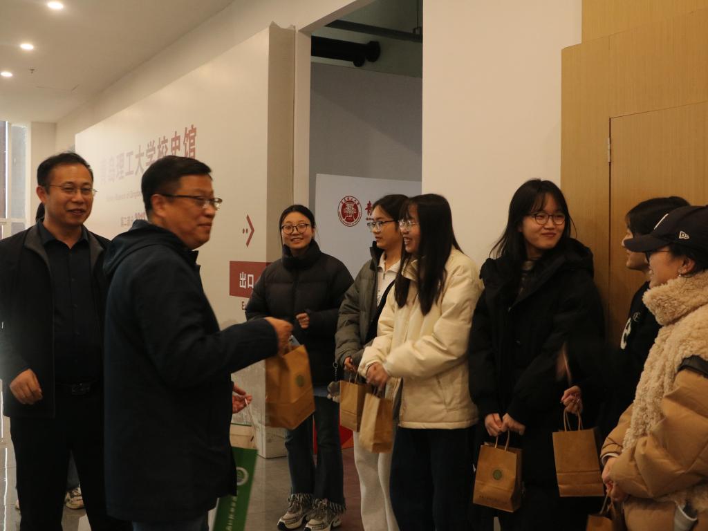 座谈会后,学院领导班子成员、辅导员深入图书馆、考研自习室、学生宿舍等,为每一位在考研征途上奋力前行的学子们送上装满 “旺仔牛奶”“橙子”“糖果”“薯片”“暖宝宝”“贺卡祝福”的“66”祝福袋,希望他们在备考大道上学“旺”相依,勇闯研途;心想事“橙”,不负韶华;笑对困难,收获“甜”蜜;“薯”尽甘来,享受沿途;心“暖”常在,相伴研途;贺卡寄情,必定上岸。特别在贺卡上,一句句温馨的祝福语,“愿你以梦为马,不负韶华,研途璀璨,未来可期……”,都是老师们对学子们最真挚的鼓励与祝福。同学们纷纷表示:“非常感谢学院为我们准备的‘祝福袋’,这让我们在备考过程中感受到了来自学校、学院的关怀与支持。我们非常珍惜这份温暖的礼物,在后期的备考中努力地复习,争取好成绩。”