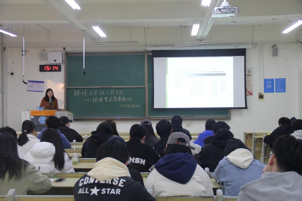 为进一步预防心理健康问题,加强心理健康教育,有效发挥朋辈志愿者在应对学生心理突发问题和挑战等方面的作用,环境与市政工程学院绿蕊心理协会于11月20日下午在主教学楼B315举办朋辈心理志愿者培训会。
