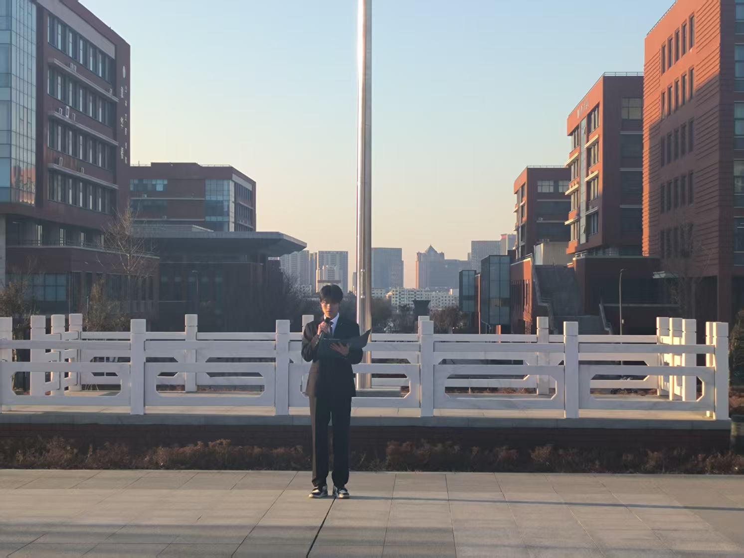 升旗仪式伊始,在庄严的国歌声中,五星红旗冉冉升起,全体人员行注目礼,表达对祖国的无限热爱和崇高敬意。学生代表朱冠宇进行了题为“学习雷锋精神,争做新时代好青年”的国旗下演讲,他引用雷锋日记中“我愿做高山岩石之松,不做湖岸河旁之柳。我愿在暴风雨中艰苦的斗争中锻炼自己,不愿仍在平平静静的日子里度过自己的一生”与同学们共勉,鼓励大家未来以更加饱满的热情投入到学习和生活中去,不断追求进步、追求卓越,努力成为国家的栋梁之才。