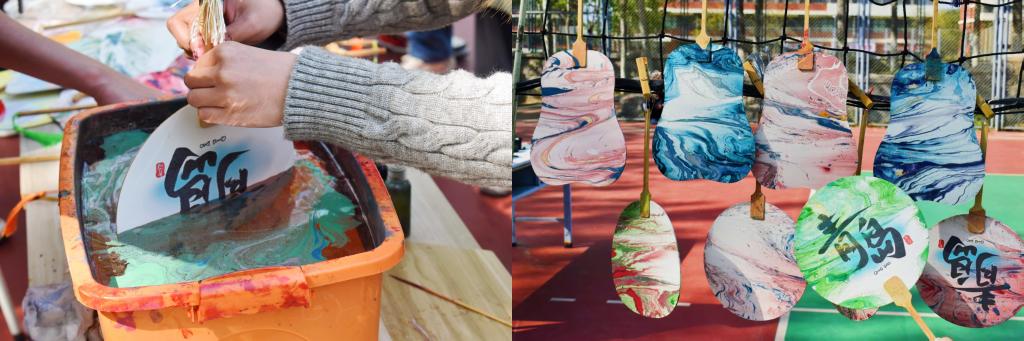 在近三小时的沉浸式体验中,百余位参与者化身“当代匠人”。让素扇绽放出青绿山水、泼墨写意等多元艺术形态,一把把独具匠心、充满个性的漆扇在同学们的手中诞生。环境工程专业李同学运用专业所长,将水处理分层原理融入漆料沉淀,创作出独具学科特色的“生态涟漪”主题漆扇。