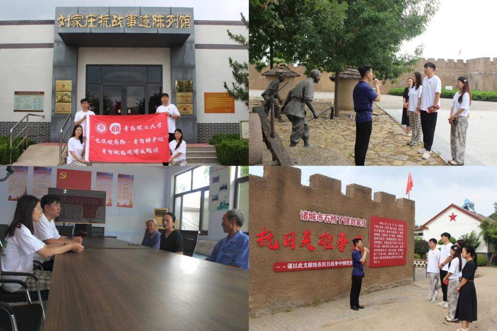 实践团首站参观了刘家庄抗战事迹陈列馆,石桥子镇刘家庄社区是诸城市第一个党支部的诞生地,透过泛黄的历史照片、珍贵的革命文物,队员们深刻感受到刘家庄人民英勇抗战的壮烈史诗,他们认真聆听讲解,重温那段烽火岁月,深刻感悟革命先辈坚定的理想信念和牺牲精神。实践团成员们还专程走访慰问了社区老党员和参战老兵。在与老前辈们的座谈交流中,聆听他们讲述亲身经历的先锋事迹和战斗故事。这场跨越时空的对话,让青年学子们深受触动。