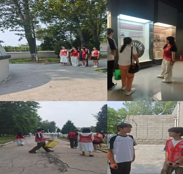 在梅花惨案纪念馆,队员们以肃穆之心承担起多角色志愿服务。作为门口接待员,用沉静的引导协助游客完成登记,轻声提醒参观注意事项,在庄重氛围中搭建起与历史对话的第一重桥梁;化身场馆的“守护者”,细致打扫馆内每个角落,用清水悉心擦拭每寸地面,让每件承载血泪的展品都在整洁中保持历史的凝重,让环保细节融入历史守护的每一步;最具分量的是讲解员角色,队员们提前深研史料,将惨案中的具体事件、遇难者故事转化为克制而清晰的讲述,从历史照片的背景到幸存者的口述片段,让参观者在聆听中直面历史真相,感受和平的珍贵,也读懂 “和平与生态共生” 的深刻内涵。