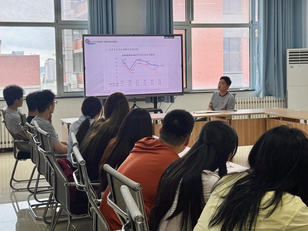 会上通报了2024-2025学年第二学期的学情分析报告,通过横向、纵向对比各专业和同期学业数据,深入剖析了学业发展的整体态势与阶段性特征。数据显示,部分科目成绩稳步提升,但仍存在学科成绩波动、学生个体差异显著等现象,为后续强化学业预警与帮扶机制提供了重要依据。会议还就违纪处分情况作了通报,进一步严肃纪律意识,引导学生规范行为。