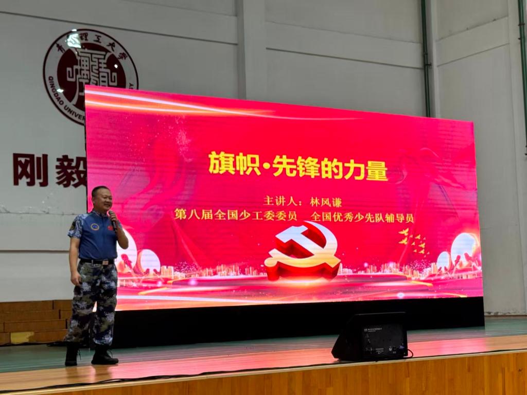 学院特邀全国模范退役军人、原海军石家庄舰政委林风谦先生担任主讲嘉宾,以《旗帜·先锋的力量》为题,结合自身军旅经历与历史记忆,深情讲述抗日战争时期革命先烈的英勇事迹——从战士们浴血奋战的战斗场景,到民众齐心支援前线的动人画面,一个个鲜活的故事、一段段厚重的历史,让在场新生深刻感悟到革命先辈为国家独立、民族解放所付出的巨大牺牲,体会到“信仰”与“担当”的重量。
