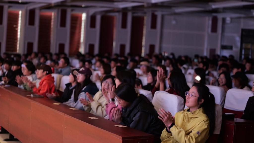 演出过程中,协会成员展现出高超的技艺与丰富的舞台表现力,每一个节目都融合了创意与技巧,赢得了观众的阵阵掌声与惊叹。尤其在节目《鸳鸯棒》的互动环节,当传统的戏法与魔术师的精湛表演相结合,戏法的“手彩”和“口彩”相结合,逗得同学们忍俊不禁。魔术师让大家见到了中国的古彩戏法,将千年前的传统艺术搬上舞台,在同学们眼前重放光芒。