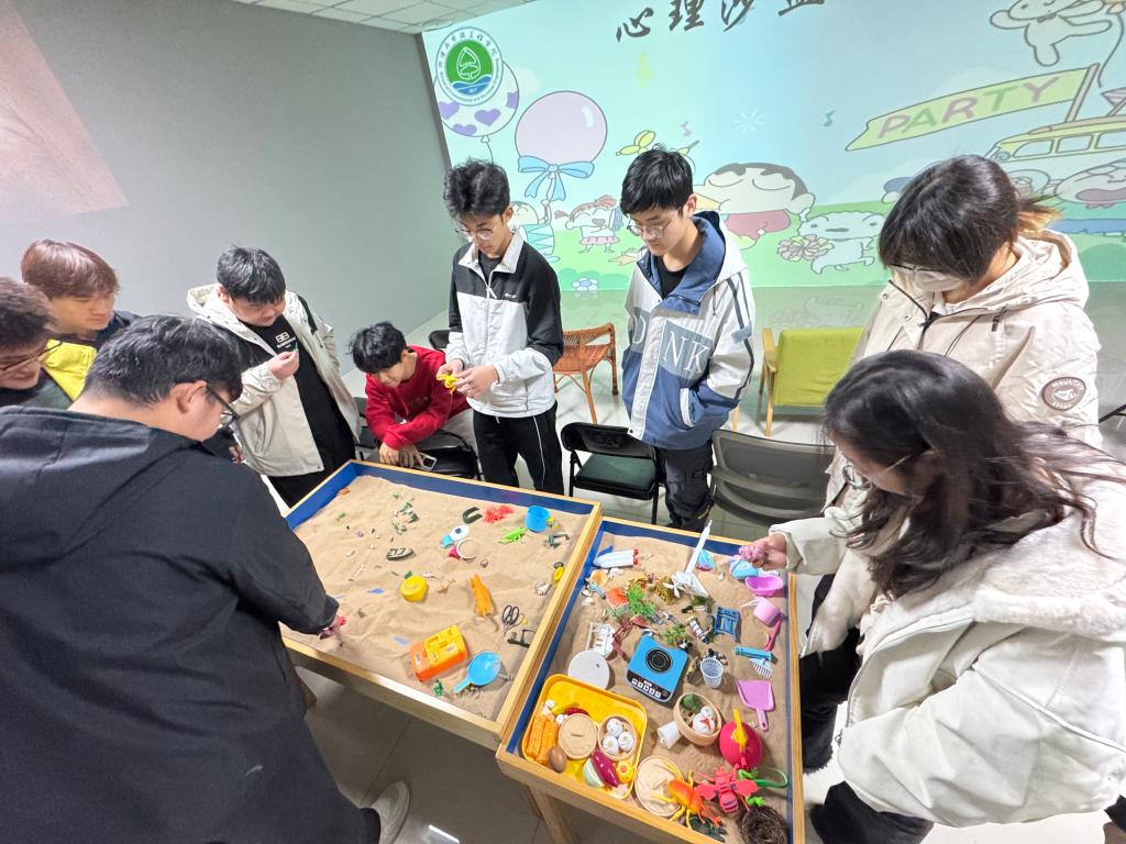 紧邻宣讲区的 “价值观维度臻选” 环节以新颖有趣的形式引发了同学们的深度思考。活动现场,协会精心挑选 “真诚友谊” 等 10 余种核心价值观作为 “拍卖品”,同学们以虚拟货币为筹码竞拍心中最珍视的价值。最受同学们欢迎的当属心理沙盘体验区。同学们有序分组,自由挑选玩偶、建筑、绿植、山石等沙具,在沙盘上搭建专属 “心灵世界”。这些小小的沙具被赋予特殊意义,同学们通过摆放组合,不自觉地释放内心情绪、展现潜意识想法。