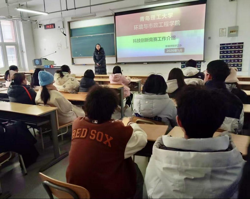 为激发学生参与学科竞赛的热情,明确竞赛参与路径,提升学生创新实践能力与专业核心素养,环境与市政工程学院于2026年1月20日下午2:00,在二教701教室顺利举办2026年学科创竞赛专题宣讲会。学院各年级学生、相关年级辅导员及竞赛获奖同学参会,宣讲会由学院辅导员宫克菲主持。