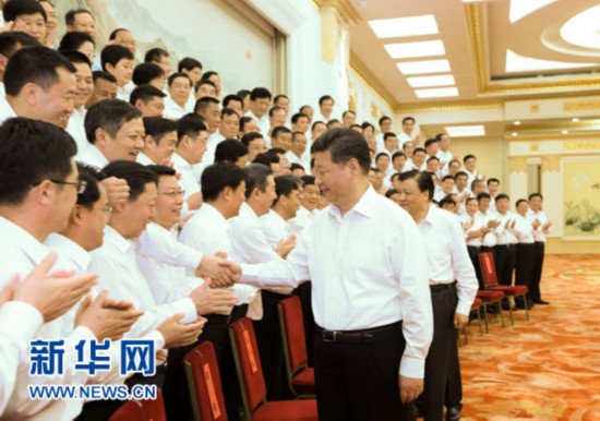 2015年6月30日,党和国家领导人习近平、刘云山等在北京人民大会堂会见全国优秀县委书记。 新华社记者 兰红光 摄