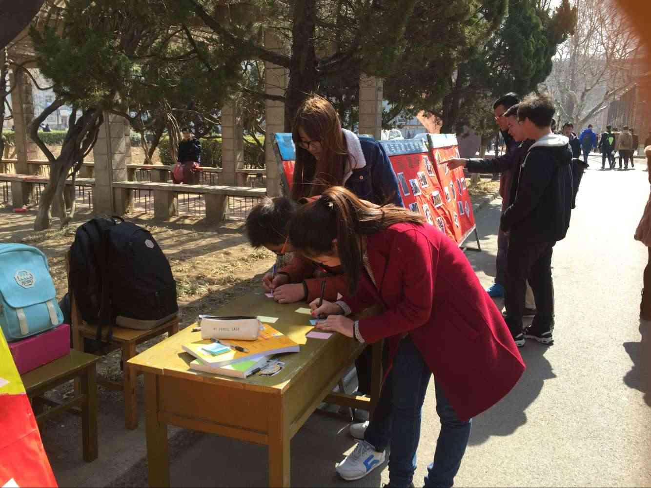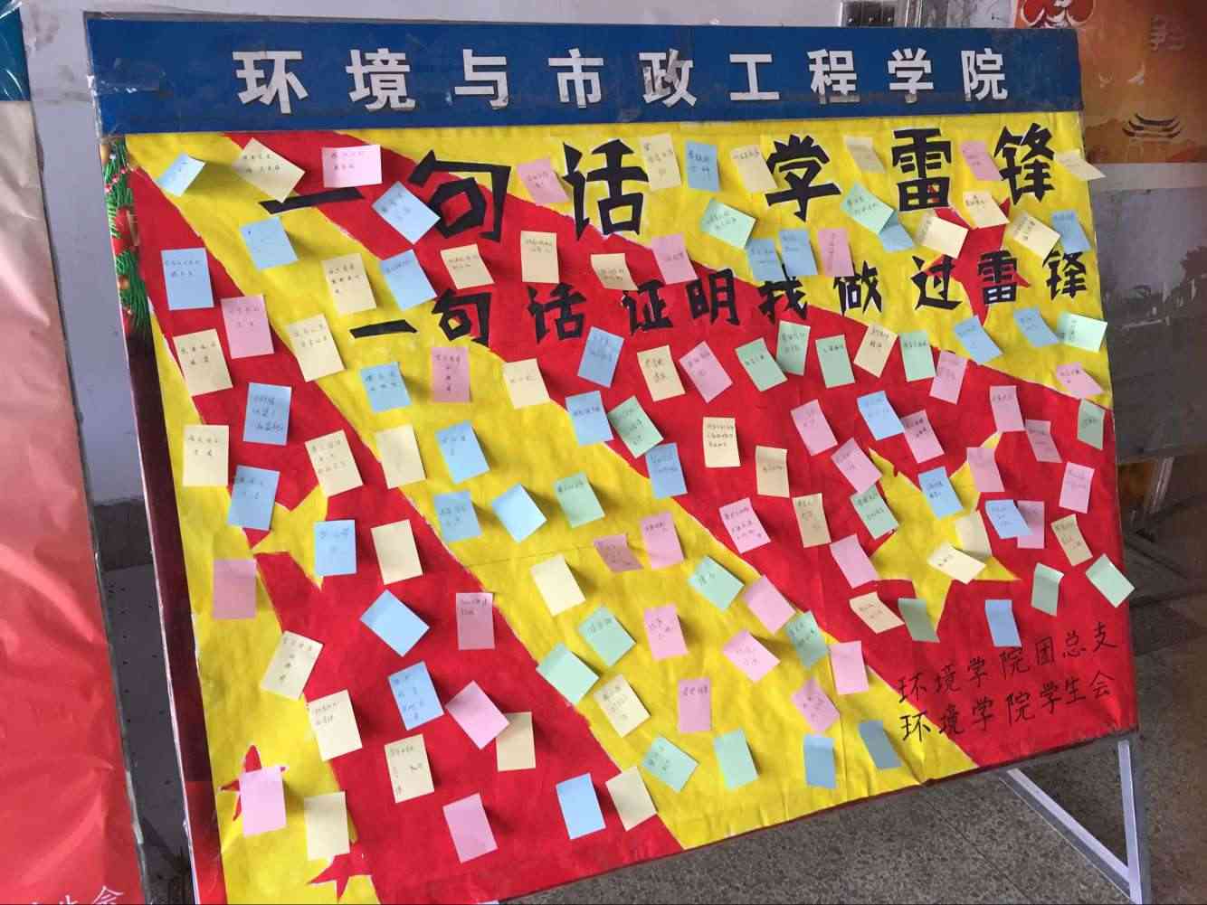 在照片展览同时,设置现场互动“请用一句话证明你做过雷锋”的留言板。此活动受到了大家的欢迎和好评,大家纷纷写上自己做过的好人好事,并且贴到留言板上,其中有“帮室友买饭”、“扶老人家过马路”等,虽然都是生活中的小事,但能做好小事也是伟人,爱心和善良也正是在小事中完美体现的。