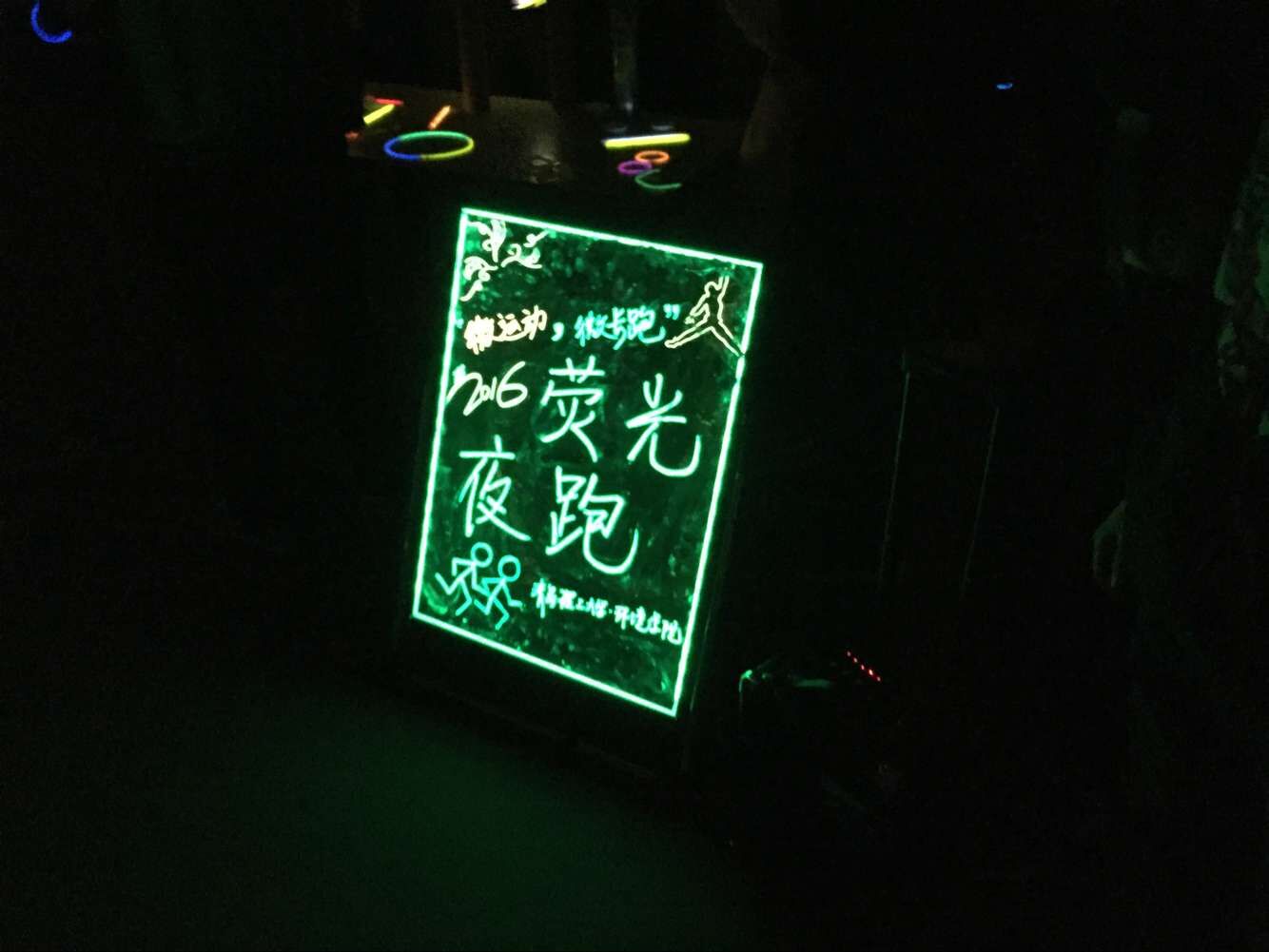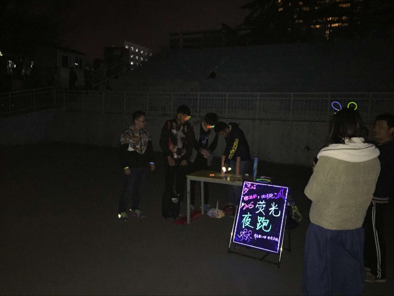 活动在宣传期间就得到了同学们的热烈反响,同学们在宣传横幅上签下了自己的名字并领取了荧光棒。到了晚上,夜跑活动正式开始,同学们三三两两地组成小组,带着荧光手环,在月色的照耀下尽情奔跑,操场上不时传来同学们的欢声笑语。活动过程中,同学们还用手中的荧光棒摆出了自己喜爱的图形和口号。不少同学表示,定期夜跑对身体是有益无害的,同时荧光夜跑也具有很强的趣味性,能很好的缓解现代社会的快节奏和日常学习生活带来的精神心理压力。