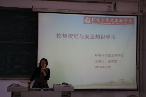 为切实有效引导新生进校即养成良好的规则意识、程序意识、安全意识和为使学生尽快具有医疗保障,环境与市政工程学院于10月12日下午,在1号教学楼五阶和六阶分别进行了校规校纪与安全知识讲座和2017年度新生医保指南讲座,2016级辅导员郑春英老师主持了上述两场讲座,2016级全体新生认真听取了讲座内容。