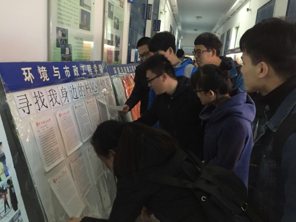为了更好地践行社会主义核心价值观,将“两学一做”活动推向深入,11月25日,环境与市政工程学院学生党支部举办了“寻找我身边的核心价值观”征文比赛,并在一教二楼进行了展览。