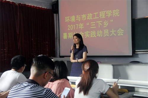 为组织引导广大青年学生在深入社会、了解国情、接受锻炼的过程中培育和践行社会主义核心价值观,环境学院于7月11日下午在一教204阶召开了“三下乡”暑期社会实践动员大会,环境学院团总支书记张恬参加了本次会议。