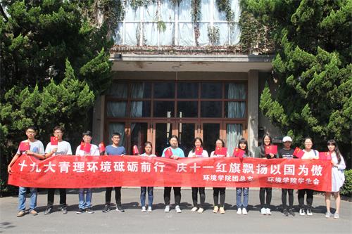 在祖国母亲的生日即将到来之际,环境学院学生用自己的行动与热情表达了对祖国母亲华诞的深情祝愿,也同时表达了对党的十九大顺利召开的深深期盼。(环境学院)