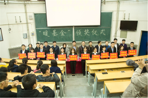 颁发仪式上,董典同代表学院向慷慨解囊的校友们表达由衷的感谢。他指出“暖基金”的设立是环境学院暖通专业校友回报母校、心系教育、关爱社会的直接体现。你们的慷慨助学、乐善好施发扬了扶贫济困的中华传统美德,是对尊重知识、刻苦钻研的激励,是对开拓进取、崇尚美德的赞许,是对广大校友和师生的感召与鼓舞。你们的行为更好地诠释了“饮水思源”的真正含义,也吸引了更多的校友加入到爱校荣校、资困助学工作中来。