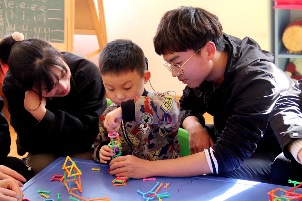 志愿者团队在小百灵听力语言康复中心,陪孩子们一起玩耍学习。他们教孩子们捏橡皮泥,和孩子们一起堆积木,教孩子们识字读书,这些游戏对于有听力障碍的孩子们来说,并不是一件容易的事。志愿者们用爱与小朋友们沟通,用他们的真诚与友好赢得了小朋友们的信赖,用他们的热情换来了小朋友的笑容,这些孩子们的笑容是对志愿者们最大的肯定。