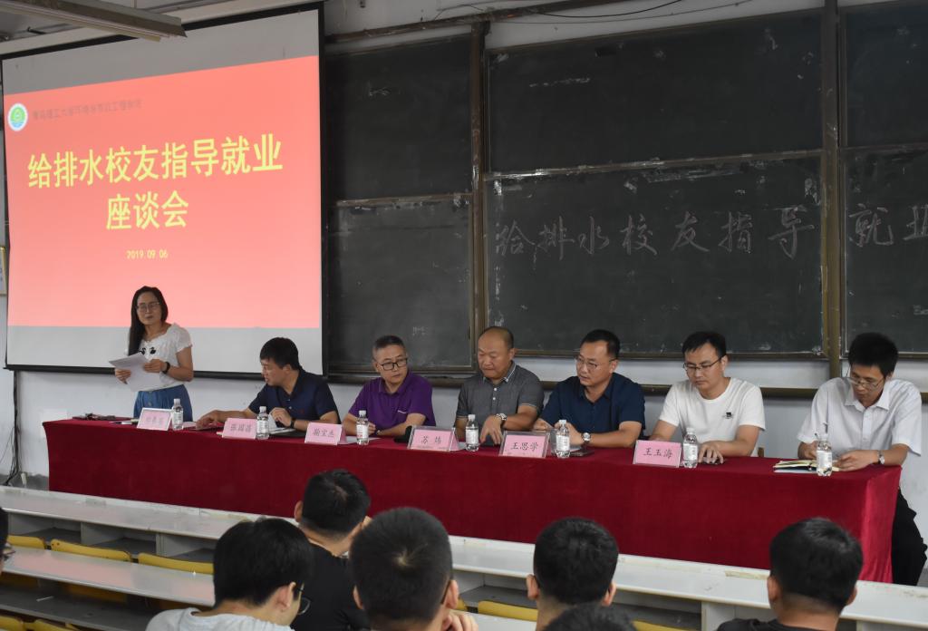 为精准解决给排水及相关专业大四学生当前就业困惑疑虑,为学生提供科学的就业指导,9月6日环境与市政工程学院给排水就业指导座谈会在一教200阶举行。北京汉尊集团消防事业部威盾电子安全总工程师、水95级苏炜校友, 济南城建院青岛分院副院长、水2000级1班鞠宝杰校友,山东旭辉银盛泰集团西部事业部星锐城项目和书香泮城项目总经理、水2000级2班王思学校友,青岛腾远设计事务所有限公司七院机电所副所长、水2002级2班王玉海校友,合作发展处副处长水162班班主任张国昌老师,合作发展处韩永剑副教授,科技发展处副处长水161班班主任赵丙辰老师应邀出席座谈会。给排水及相关专业学生参加座谈会,座谈会由环境与市政工程学院就业指导老师郑春英主持。