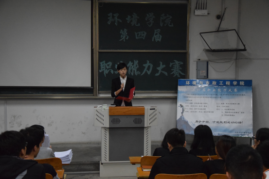 10月15日晚,环境学院在一教六阶举行了第四届职业能力大赛的初赛。本次大赛由党总支副书记周红燕老师和团总支书记张恬老师出席,环境学院学生会副部长及以上成员、各班班长团支书及自由报名的各年级同学均参加此次比赛。