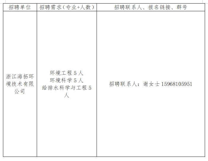 浙江海拓环境技术有限公司2025届毕业生招聘