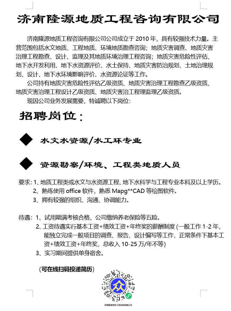 校招 | 济南隆源地质工程咨询有限公司校园招聘