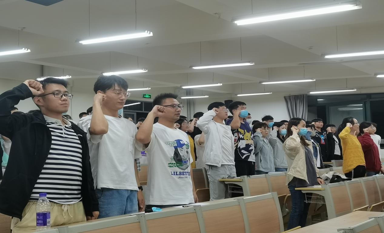 重温誓词,牢记使命 开展“温誓词 忆初心”毕业生党员主题活动。活动伊始,学生党员刘育铭带领全体党员一起高举右手,面对鲜红的党旗庄严宣誓。通过重温入党誓词是对党员的一场特殊的思想教育和精神洗礼,激励毕业生党员恪守初心、勇担使命,以实际行动服务社会。