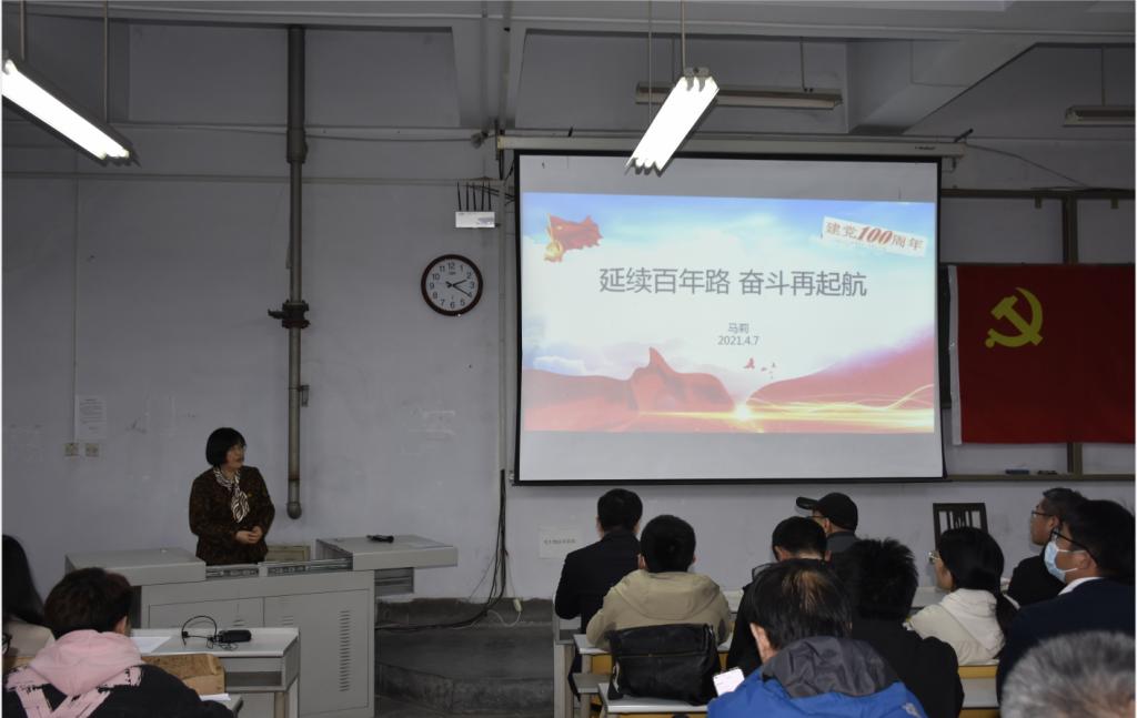 马莉以《延续百年路、奋斗再启航》为题,从“为什么学党史”、“党史学什么”“如何践行”三个层面为学院全体师生党员讲授了一堂生动的专题党课。首先,她讲到学习党史为了知党爱党、知史爱国,是为了不忘初心、牢记使命,是为了总结经验、开辟新局。其次,从四个阶段讲述了中国共产党带领中国人民从站起来、富起来到强起来的伟大奋斗历程。最后,结合学院2021年工作实际,从党建、科研、教学、师资队伍建设、学科建设与研究生教育、学生工作六个方面做出了具体安排。要求全体党员明确中华民族伟大复兴战略全局和世界百年未有之大变局,切实做到学史明理、学史增信、学史崇德、学史力行,追求卓越建设一流,聚是一团火散作满天星,着力培养德智体美劳全面发展的时代新人。