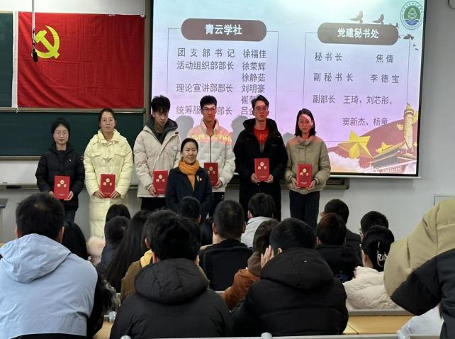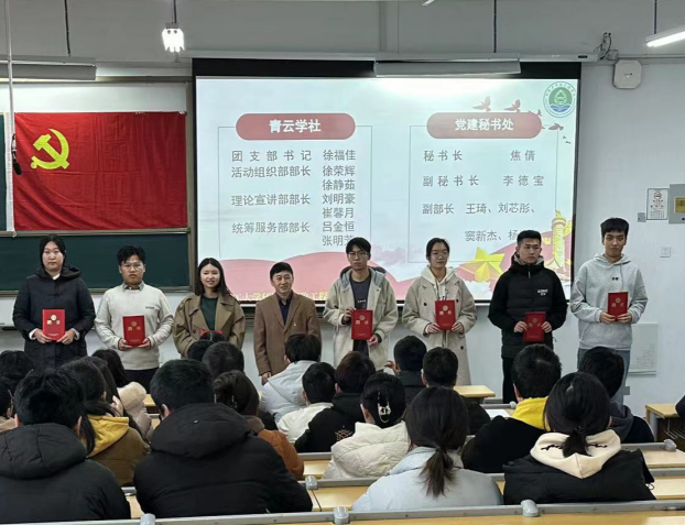 青年奋起,党建引航。2023年11月29日,学院开展学生党建工作室新一届成员聘任仪式。经过个人申请、辅导员、班主任推荐等层层选拔,产生新一届学生党建工作室主要成员。在聘任仪式上,正处级组织员范学工,青云学社指导教师、马克思主义学院教授任颖卮为新一届学生党建工作室主要成员颁发证书。中共预备党员、学生党建工作室主要负责人徐福佳说道:作为学生党建工作室的一份子,今后自己将秉承“求实创新、高效服务”的理念精神,充分调动每位成员的积极性和凝聚性,团结一心,砥砺奋进,完成好上级党组织交待的各项任务。