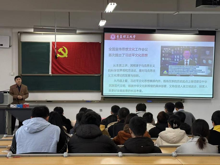 弘扬思想,自觉践行。开展“教授进社团”专题党课,马克思主义学院教授任颖卮以“开辟时代新发展,把握百年大变局”为题,为72名学生党员开展了一次堂精彩生动、发人深省的主题党课。首先,任老师从“新时代新的马克思主义,‘两个结合’,理论创新角度”三个方面向我们讲述了开辟马克思主义中国化时代化以及新境界的内涵和意义。然后结合新时代下的国际形势向我们介绍了当今百年未有之大变局以及俄乌战争所带来的影响。学院青马工程培训班学员徐静茹说道:听完任教授的专题党课,自己收获颇丰。作为积极向党组织靠拢的青年,自己会以成长为一名合格的共产党员为目标,真正践行“请党放心、强国有我”的青春誓言。