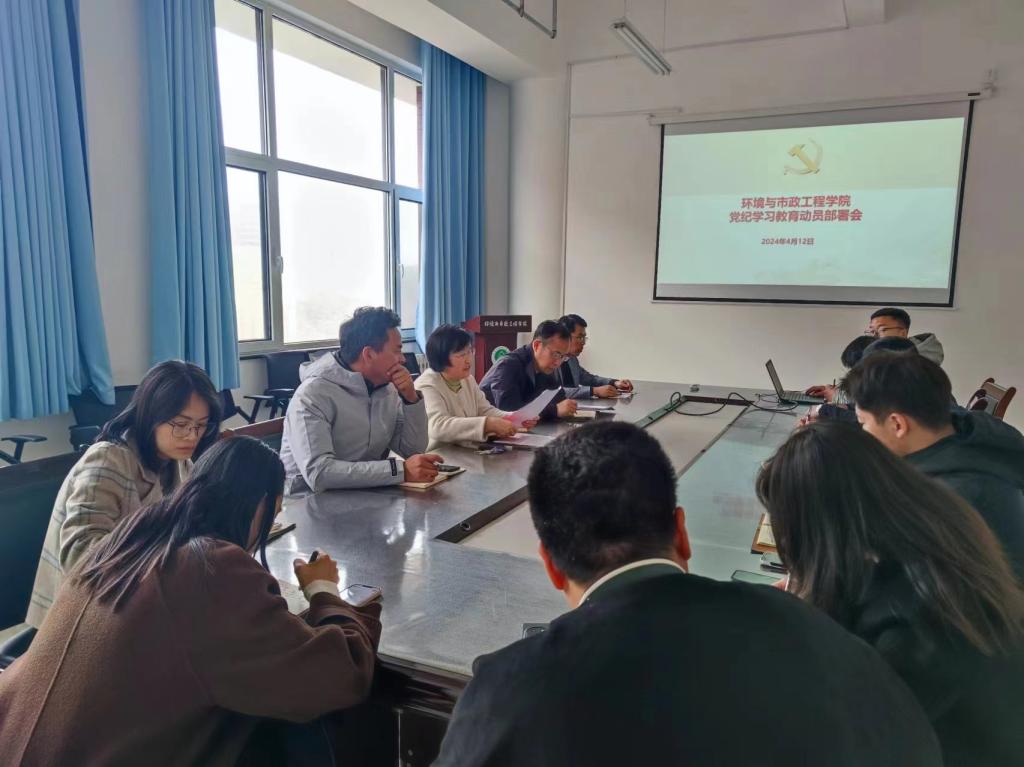 为认真贯彻落实上级的工作要求,高标准高质量组织开展好党纪学习教育,2024年4月12日,环境与市政工程学院召开党纪学习教育动员部署会,学院党委委员、党支部书记、辅导员代表参加会议,学院党委书记马莉主持会议。