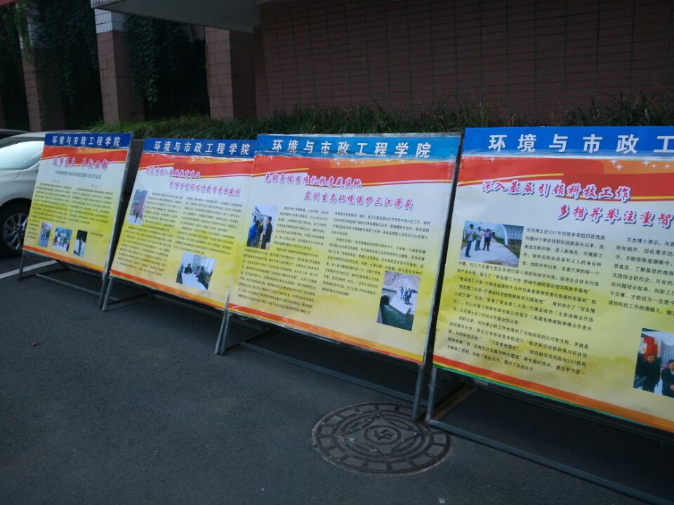为贯彻落实全国、全省高校思想政治工作会议精神,认真落实“两学一做”学习教育常态化制度化,加强师德建设,提升师德水平,教育和引导广大教职工立足本职、履行职责,弘扬先进,宣传典型,发挥优秀教师的榜样示范作用。9月25日,环境学院在市北校区1#教学楼前举办了2017年支边援疆挂职教师先进事迹展示活动。