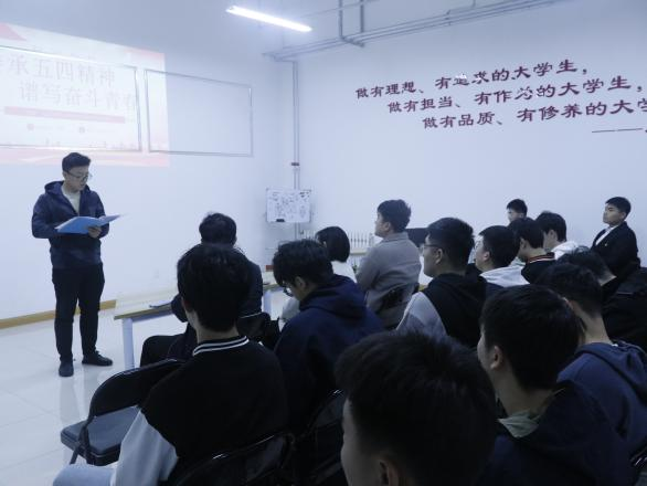 活动伊始,东区五公寓临时党支部书记王登榜汇报临时党支部成立以来支部建设情况。随后,组织委员李斌同志带领学生党员们学习五四精神内容和习近平总书记给中国农业大学科技小院的学生回信。最后,结合“学生党员在社区如何充分发挥党员先锋模范作用”,大家进行了交流讨论,党支部成员纷纷表示:作为新时代青年,要将习近平总书记的鼓励和期望化为学习与奋斗的动力,做有理想、有担当、能吃苦、肯奋斗的好青年。