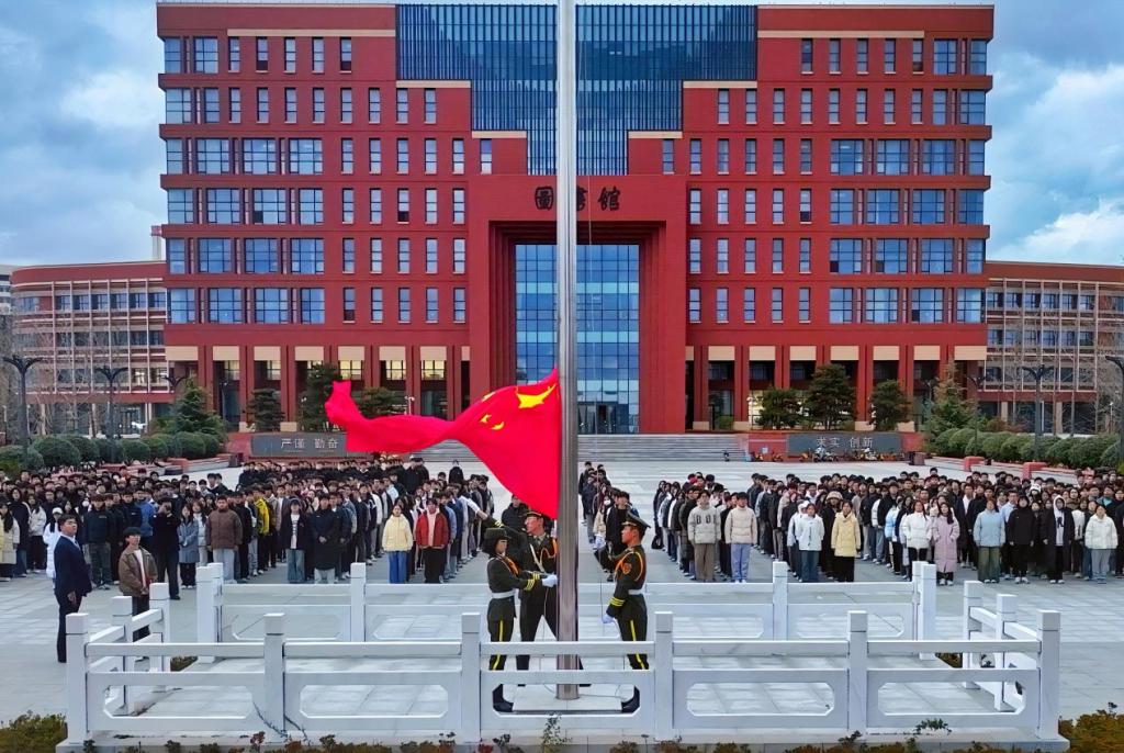 为充分发挥思政教育铸魂育人功能,推动爱国主义精神在青年学子心中牢牢扎根,鼓励学院2024级新生以更加饱满的精神面貌肩负起新时代的责任和使命。11月25日的清晨,环境与市政工程学院在礼贤广场举行主题为“青春逐梦正当时,踔厉奋发向未来”升旗仪式。6点50分整,国旗护卫队队员们迈着整齐有力的步伐,护卫着五星红旗走向升旗台,每一步都彰显着对国旗的敬重。随着国歌响起,2024级全体学生身姿挺拔,神情肃穆,面向国旗行注目礼,高唱国歌,眼神中饱含着对伟大祖国的热爱和忠诚。