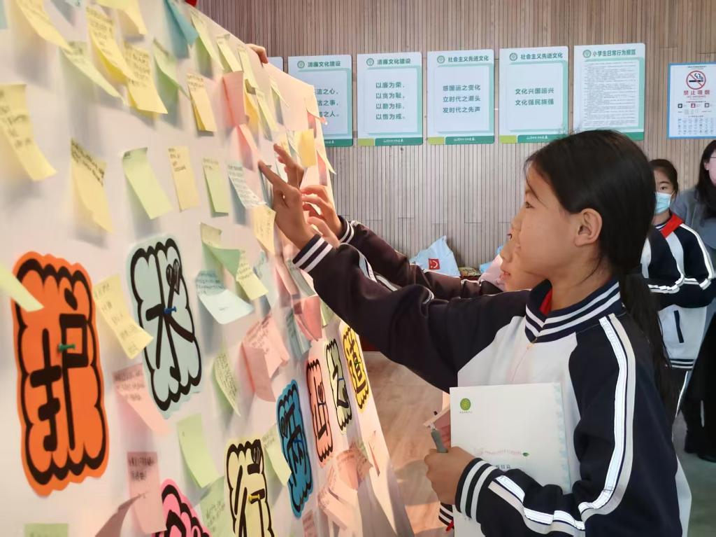 活动尾声,志愿者组织孩子们写下了环保便利贴。孩子们一笔一划地写下了自己的环保小目标。“要节约用水”“出门选择步行”,这些质朴的话语,承载着孩子们对环保的坚定决心。