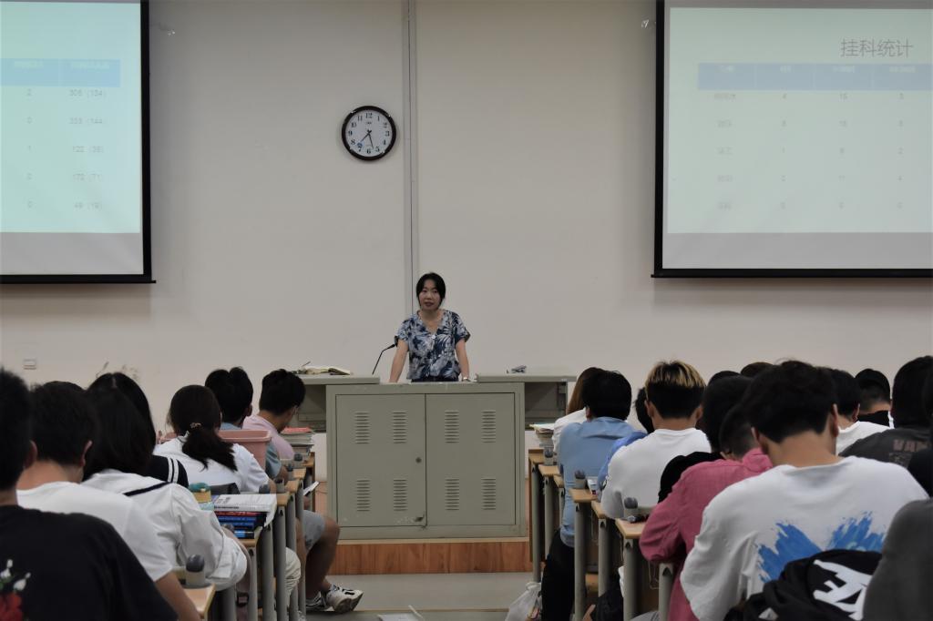 接下来,从升学、就业等多个方面出发,向同学们详细分析了当前的形势。当前的形势是严峻而又充满机遇的,只有同学们不断提升自己的科学文化修养和专业水平,才能在机遇来临的时候勇立潮头,走好每一步。何珊珊向同学们简略讲述了考研的备战过程,提醒有考研想法的同学们应该从当下做起,为自己的学业作出合理规划,合理分配自己的时间和精力,厚积薄发,才能在将来的考研大军中独占鳌头。